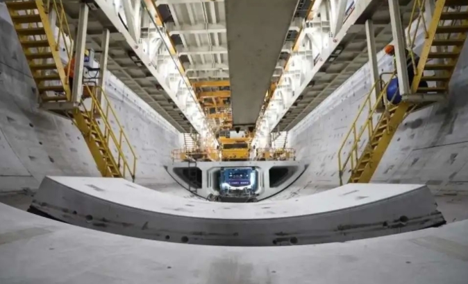 “馳越號”盾構機于2021年12月27日從7號工作井始發,在約一年的掘進施工中,近距離穿越了航油管、彩虹橋、機場北回轉6匝道、機場景觀水池等重要建(構)筑物,單臺盾構機日推進最高達15環,創下了9米級盾構機“單孔吊裝、軌道運輸”的上海最快紀錄,最終在浦東機場站順利完成接收工作。