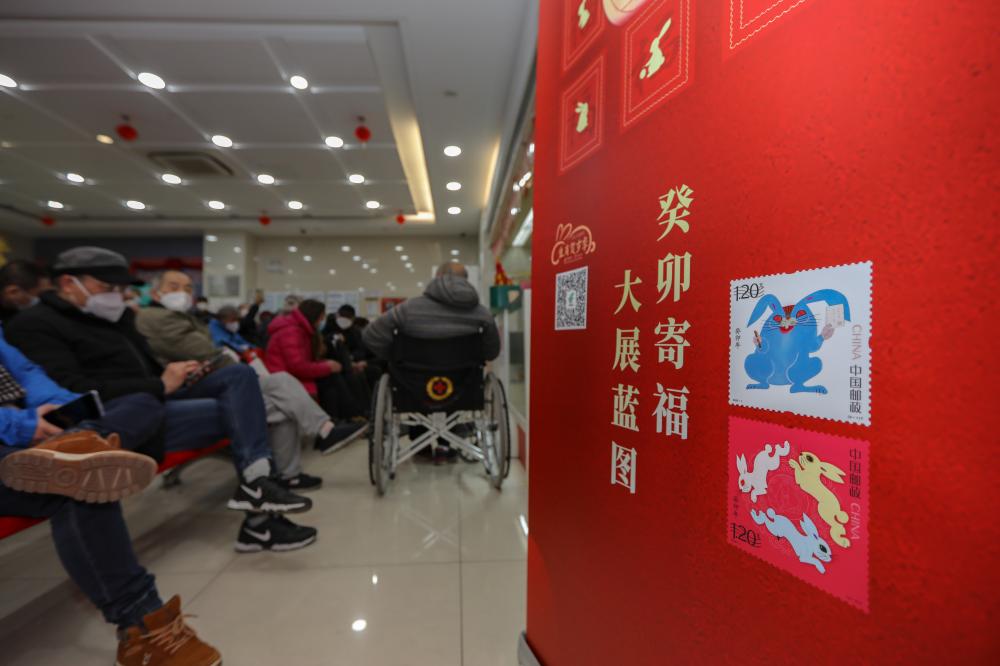 兔年特種郵票在上海發售,郵迷通宵排隊