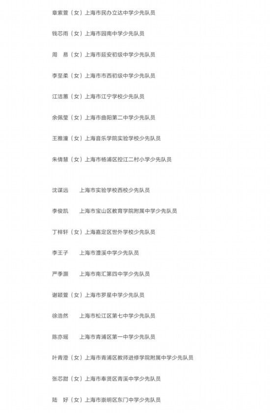 原標題:【提示】上海少先隊19名隊員、13名輔導員、19個集體受到全國表彰!