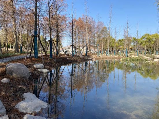 改造后的公園以秦家港為界,北區主打“濕地+互動體驗”,注重濕地駁岸互動式體驗;南區主打“濕地+生境科普”,拓展多樣化的濕地游覽方式。