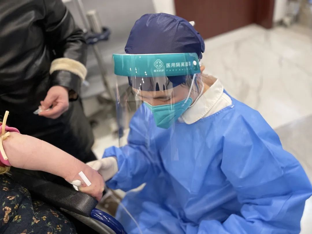這一側,一位聲音嘶啞的醫生正在通過電話與其他醫生會診交流病人病情;另一側,一位護士剛剛為一位患者輸上液,便急忙轉過身連續咳嗽了好幾下,“陽康”后的她依舊沒有完全恢復;而那邊,為了配合老人輸液方便,一位護士單膝跪地為老人扎針......