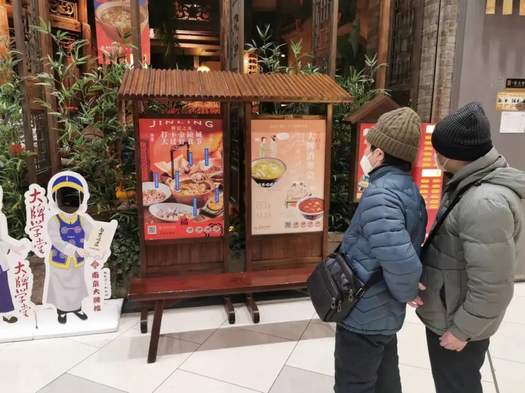 不單單是商場餐飲,沿街的中華老字號也要在“年味經濟”里分一杯羹,大富貴已經將“2023年貨禮盒”的促銷廣告張貼在醒目位置,分四個價格檔次的套餐禮盒將各種鹵味、點心精心裝填。