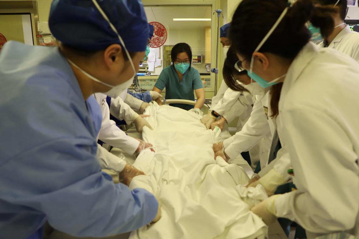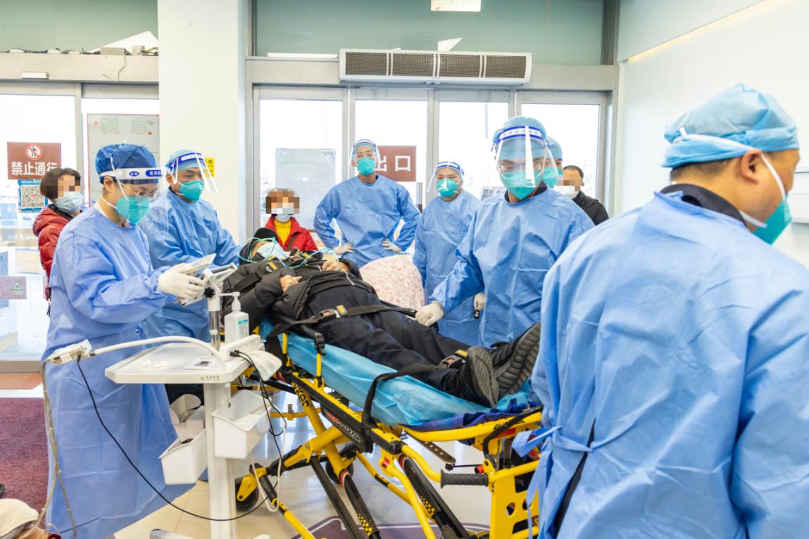 急診急救團隊竭盡全力,醫院層面則快速進行統籌協調:成立由南北兩個院區醫療副院長牽頭,醫務處、護理部等多部門參與的急診分流專項工作組,每日在急診大廳現場辦公,督導、協調急診患者分流,確保救治患者的第一關口保持通暢,住院床位得到最合理的利用。與此同時,醫院打破按學科、按專業收治患者的常規做法,依托急診危重病科、呼吸與危重癥醫學科等??苾瀯?,聯合其他學科為救治急診患者釋放更多物理空間。