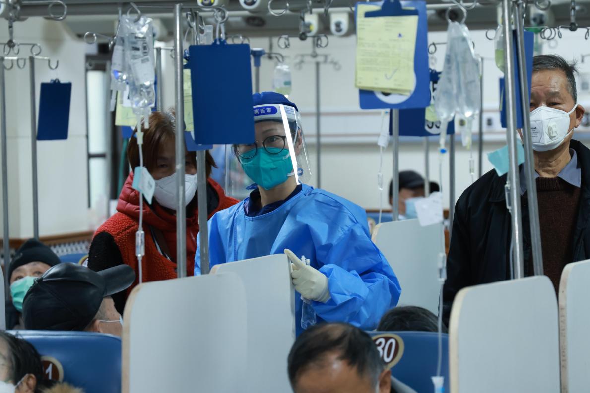 虹口院區急診靜配中心里,北部急診輸液室護士長胡美琴告訴記者,近期每天需要輸液的患者是以往的3倍有余。為了節約一分一秒,輸液室的護士們經常在8小時的工作時間內不吃不喝、不上廁所?!拔覀兪稚系幕顑涸倏煲稽c,患者就能盡快輸上液,每個環節都加速一些,整個急診急救單元的運行就能更快一些!”胡美琴說。