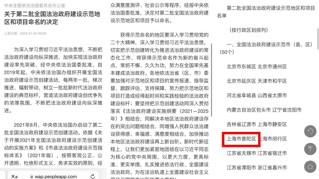 記者從普陀區司法局了解到,普陀區通過一系列工作部署,完成了第二批全國法治政府建設示范地區的申報和實地評估工作。