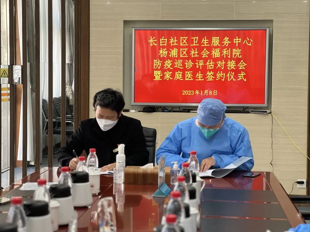 為加快構筑“保健康、防重癥”防線,保障養老機構內老人平穩度過疫情高峰,1月8日上午,在區民政部門的協調下,楊浦區社會福利院與長白社區衛生服務中心舉行防疫醫療會診洽談會暨醫療服務合作項目簽約儀式,來自院方的相關負責人與長白社區衛生服務中心的醫護人員簽署合作協議。