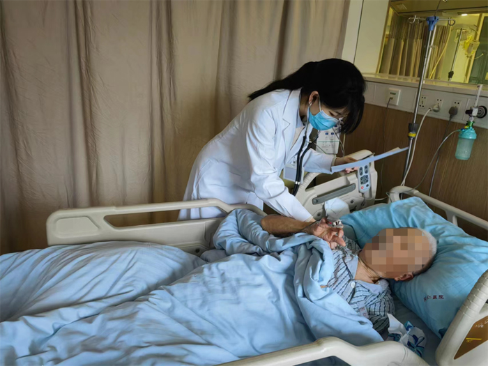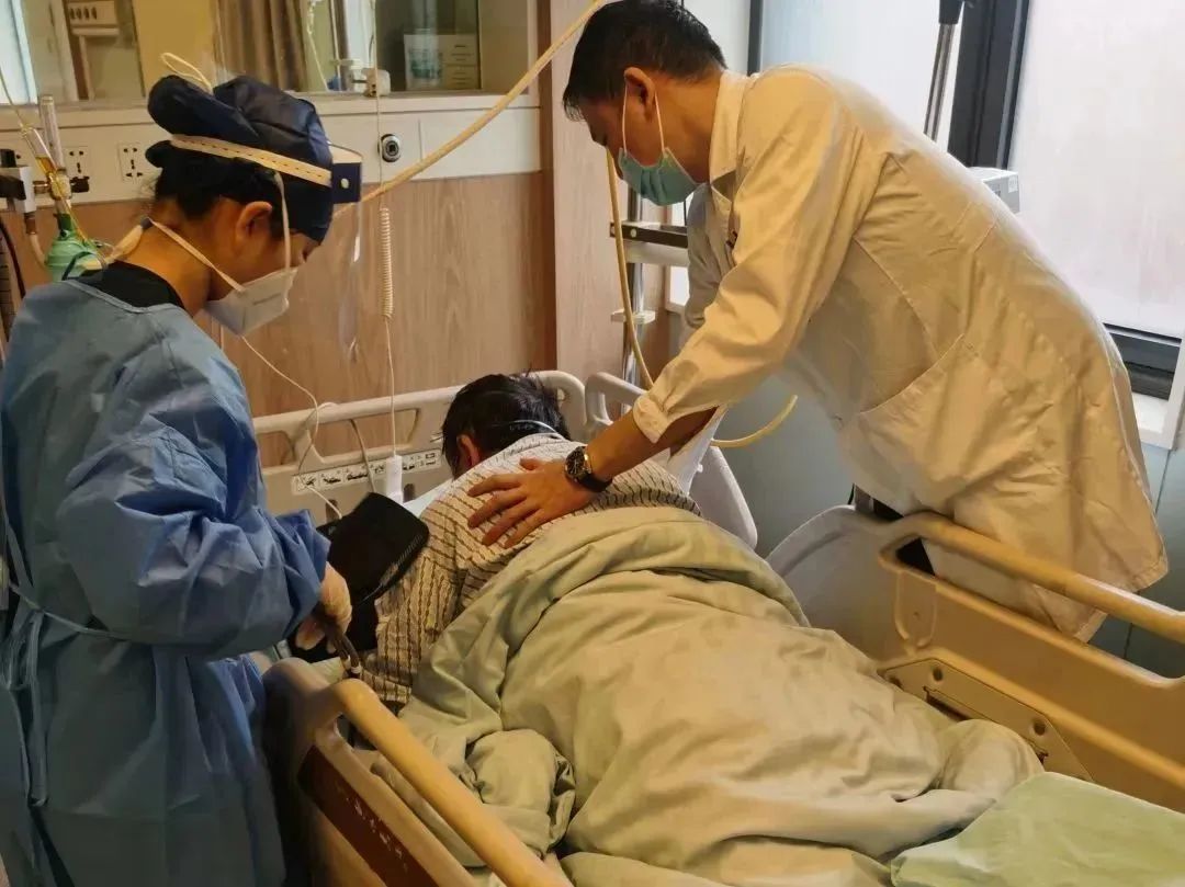安全完成了頭顱CT的檢查并回到病房后,涂志卉又和上級醫師一起為患者進行了導尿、推針、氣管插管、吸痰……