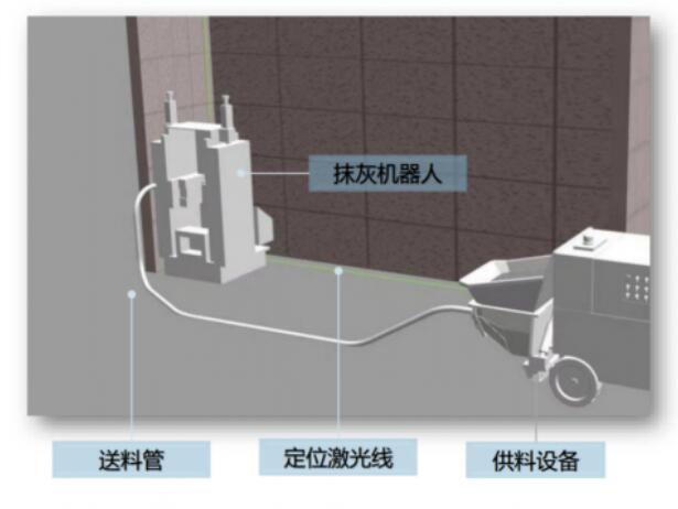 機器人抹灰主要分供料設備、送料管、抹灰機器人三大部分組成。