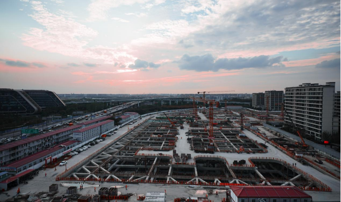 由新長寧集團打造的臨空12號地塊虹橋上城正在進行樁基工程、圍護工程的施工,預計將于2024年底整體竣工。