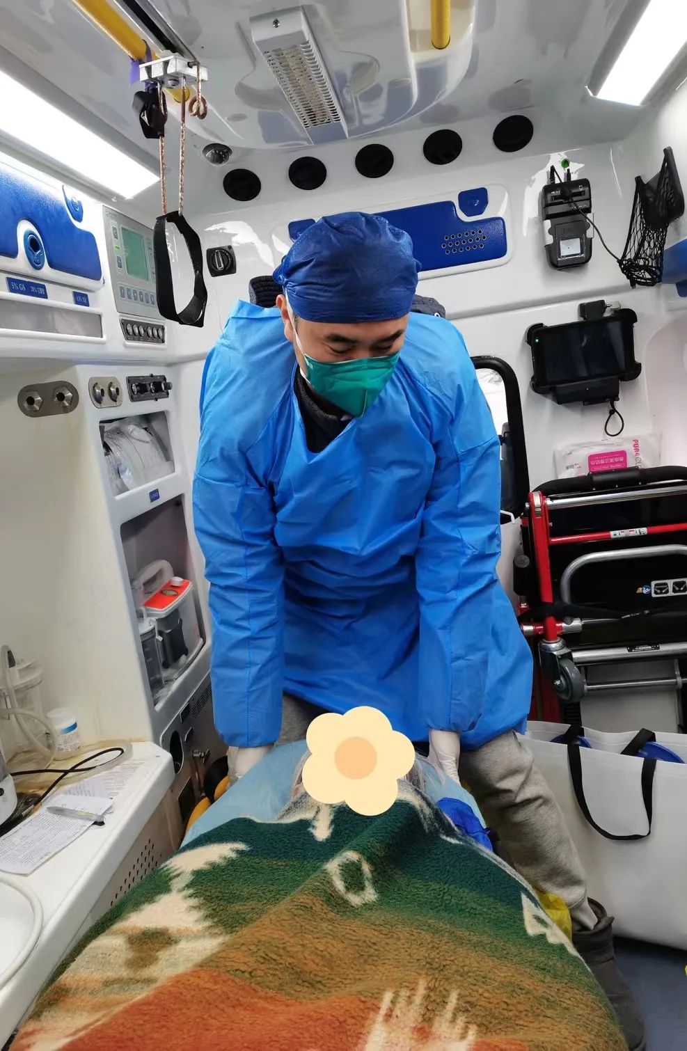 在完成生命體征監測及基本治療,判斷暫無危險后,華國安低聲與患者說道:“老奶奶,您別緊張,深呼吸,休息會兒,馬上就到醫院了?!鞭D過身,他又耐心地回答患者家屬的問題,告知老人目前的病情情況,漸漸地,家屬的情緒平穩了。