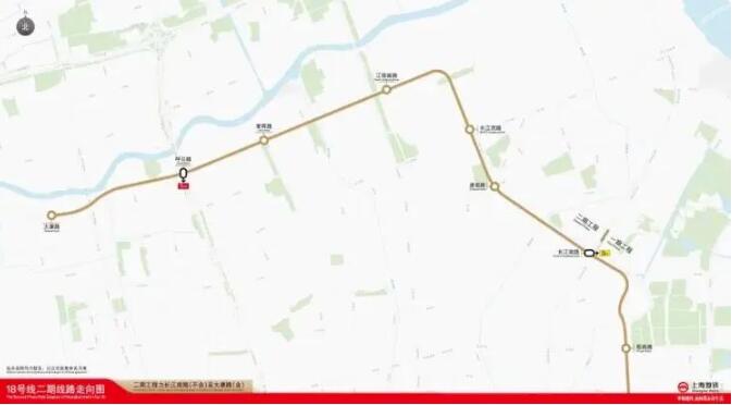 在建18號線二期位于寶山區,從線路走向示意圖上看,18號線二期其實是18號線一期的“西延伸”。其起點位于一期的終點站長江南路站,一直向西通到寶山廟行地區,至大康路站。