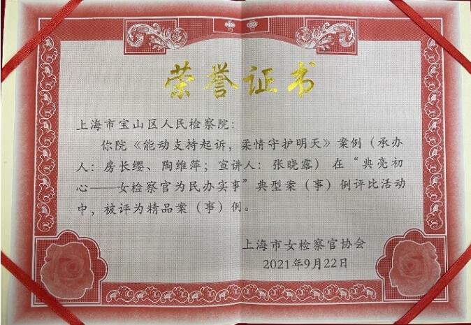 團隊積極探索法律的特殊適用情形,辦理全國首例刑事附帶民事精神損害賠償支持起訴案件,獲評上海檢察機關“典亮初心——女檢察官為民辦實事”精品案例,入選最高檢《未成年人檢察工作白皮書》。