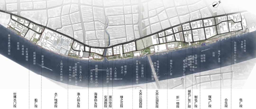 楊浦濱江公園城市示范區南段規劃范圍西起秦皇島碼頭,東至國際時尚中心,北至楊樹浦路,南臨黃浦江,全長約5.5公里。本項目為示范區南段建設工程一期,包含楊浦濱江5.5公里公共空間提升。