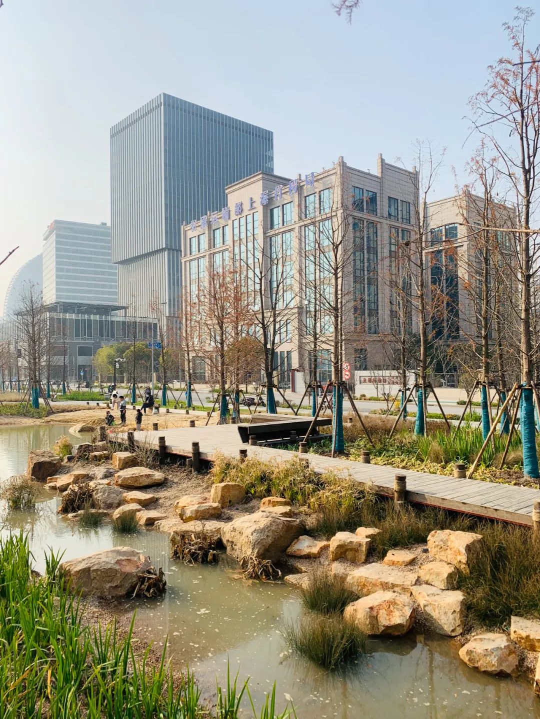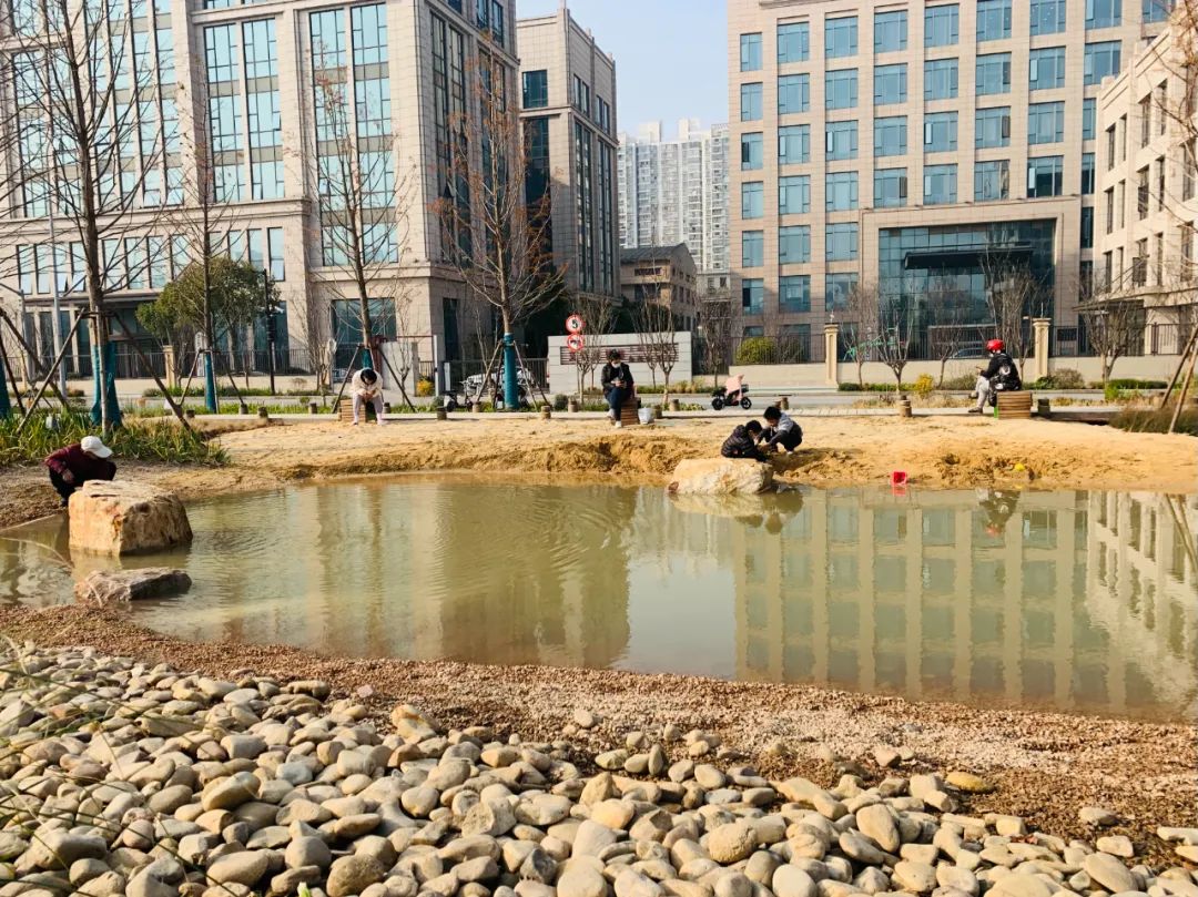 在綠之丘和上海人民城市規劃展示館中間區域,有一片杉林濕地。在本次提升改造中,設計師因地制宜地利用現狀地形,選擇鋪裝材料。同時,通篇布局和構思植被吸水,地形蓄水、生態水池凈水以及城市雨洪基礎設施等方面,通過淺灘濕地和木平臺教育體驗區的打造,讓這里成為兒童親水活動區域。
