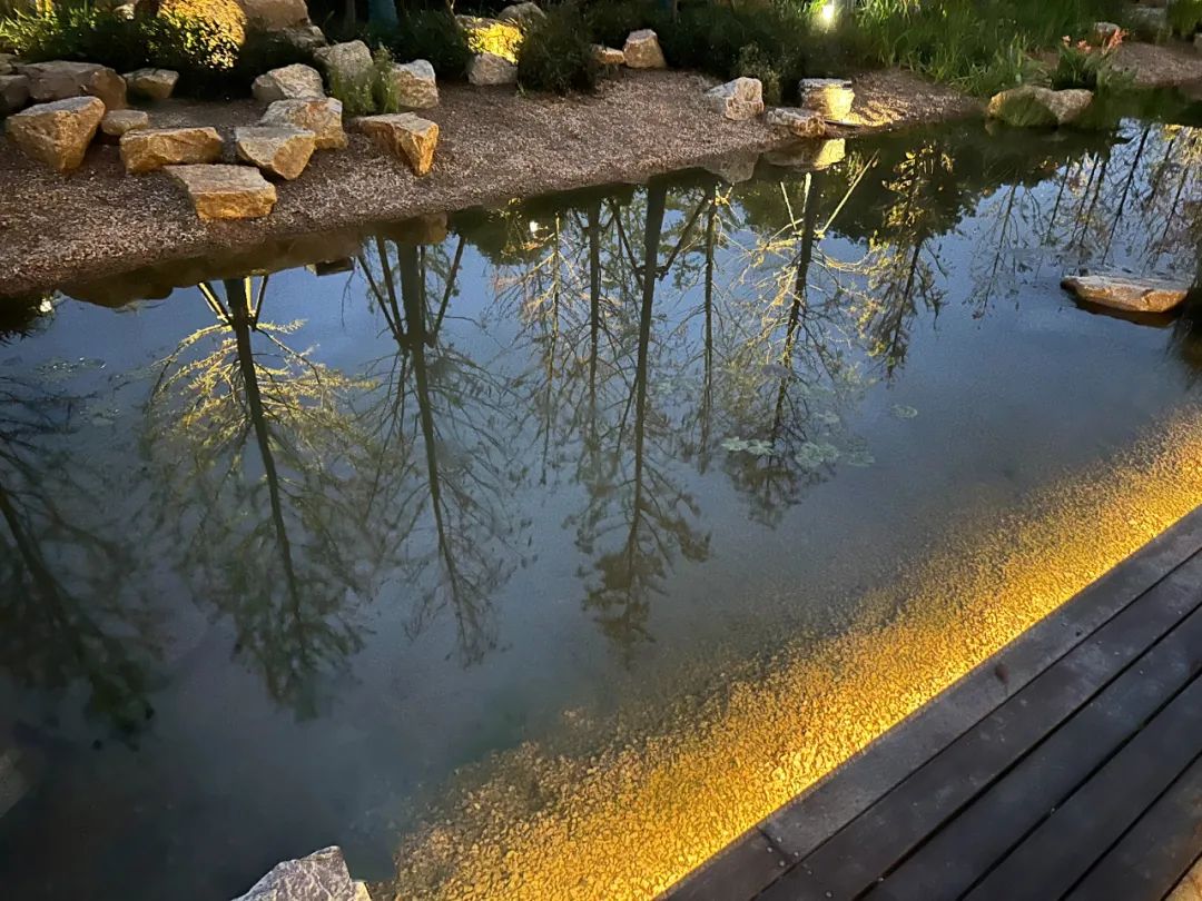比如,綠之丘附近在基礎照明之上增加了霧森裝置,到了夜晚,雨霧縹緲,光隨影動,魚兒嬉戲,引人駐足;一旁的活動草坪,主要以功能照明為主,為兒童提供安全舒適的燈光氛圍,并在草皮中嵌入動物爪印造型增加趣味性。夜游濱江,被溫馨舒適的燈光包圍,耳邊不時傳來兒童清脆的笑聲,仿佛一首動聽的小夜曲。