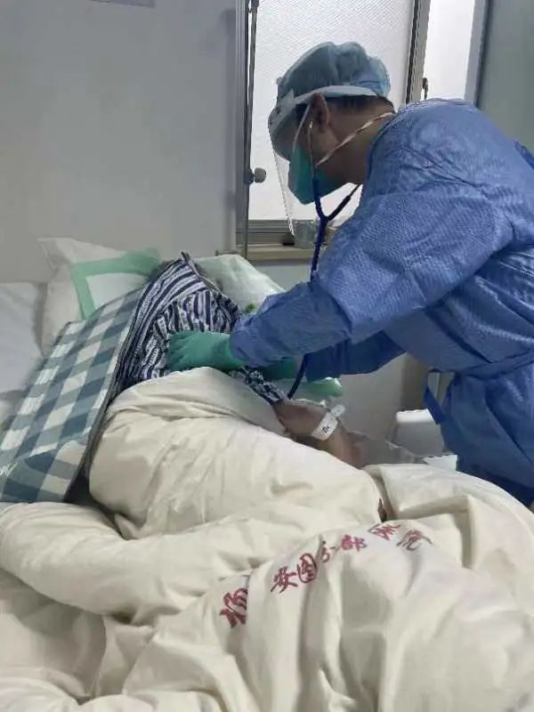 69歲的龔老伯是一位長期臥床的老人,患有高血壓、冠心病、腦梗死等多種基礎疾病。在護理院感染新冠后發熱至39℃,服用退熱藥后仍持續低燒近一周,還出現咳嗽咳痰加重、精神萎靡等癥狀。楊浦區中心醫院感染性疾病科主任王斌通過視頻為龔老伯進行了會診??紤]龔老伯有肺炎可能,遂將其轉至楊浦區中心醫院進一步檢查治療。