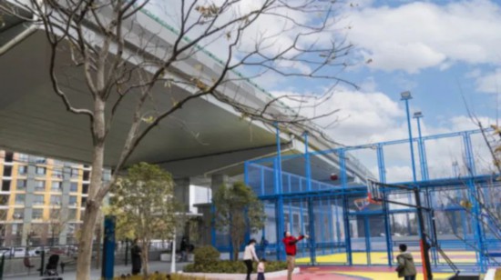 本次內環高架(四平路-政本路)工程還有一個特點,就是橋上設施改造和橋下景觀提升同步實施。作為楊浦區重大工程項目,內環(四平路-政本路)橋下濱水空間提升工程也已完成,近期正式開放。該項目的設計理念是“生態共融、水岸聯動、活力共建、文化共創”,通過鮮亮活力展現時代特色,將綠色生態融入時尚魔都,打造楊浦第一個精細化利用和開放式橋下空間。這處開放式的“蘑幻森林”,不僅擁有籃球場、平衡木、健身器械、搖搖木馬……成為居民15分鐘社區生活圈中的健身場所,適合全人群休閑娛樂,同時還將東走馬塘河畔打造成一條綠色慢行步道,實現了人車分流、坡道盲道覆蓋、植被物種豐富,極大地提升了區域居住品質。