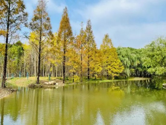 公園在設計定位上,以保護利用原外環林帶生態本底風貌為原則,利用現狀水系資源,并圍繞“杉水”特色,打造了“杉林秘徑、曲徑清溪、湖光樂動”三個游覽打卡景觀節點。