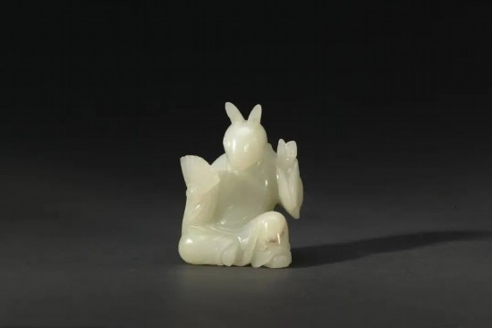 十二支神是指十二地支的守護神,對應十二生肖的形象,其中玉兔是清晨5點至7點卯時的守護神。本品為上海博物館所藏一組玉雕獸首人身十二支神坐像中的一支。