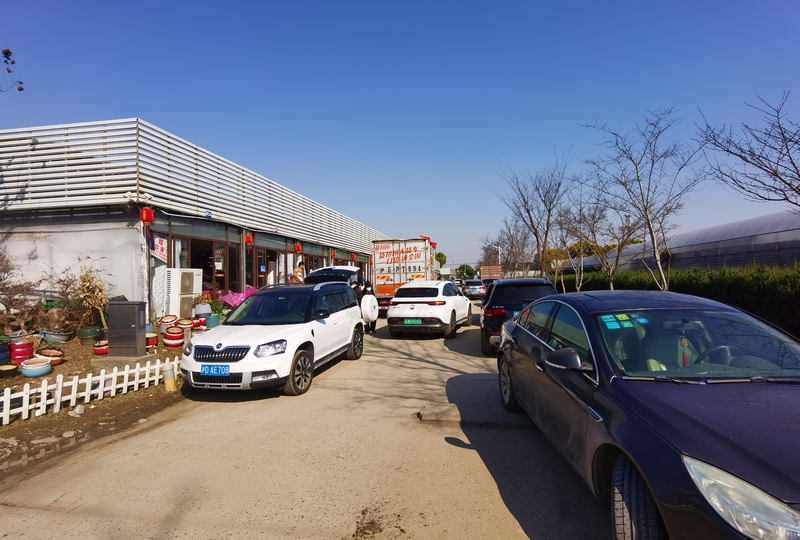 1月17日上午,嘉松中路上的虹橋花谷里,本就不寬的道路兩側停滿了車輛,許多市民正把剛買的大件年宵花往后車廂里裝。