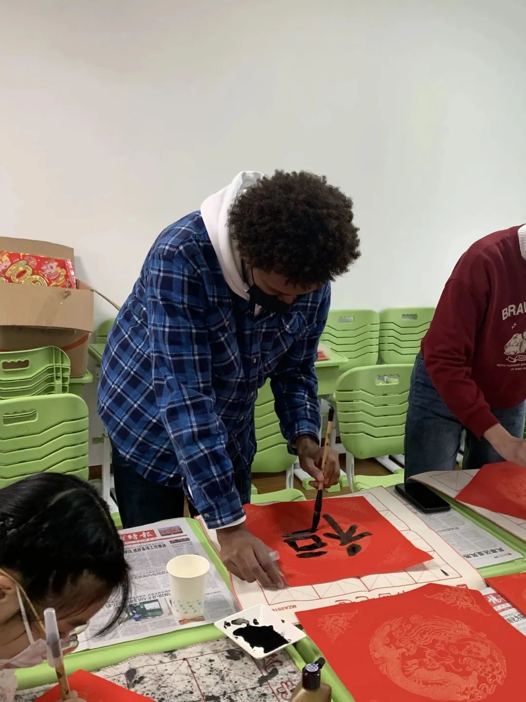 火紅的春聯,寓意美好的福字,吸引著留學生們躍躍欲試。在老師的指導下,大家爭相揮毫潑墨,寫得有模有樣。不僅寫出自己想說的新春祝福和心里話,更表達了對新一年的期許。