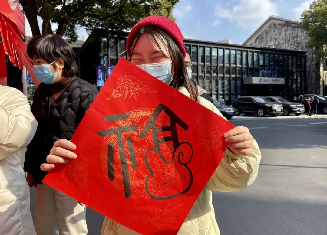 現場有好幾位來自園區廣悅書社志愿者工作室的志愿者。據了解,在園區黨群服務中心的指導下,不少在園區內工作的書法愛好者自發組建了這個以書法繪畫指導、交流為目的的愛好者團體,定期在黨群服務中心內組織活動,“在這次活動前,志愿者們都在家里、黨群服務中心里練習了好多遍,就想給大家送上新年里最有心意的春聯、福字?!眻@區黨群服務中心主任連薇介紹道。