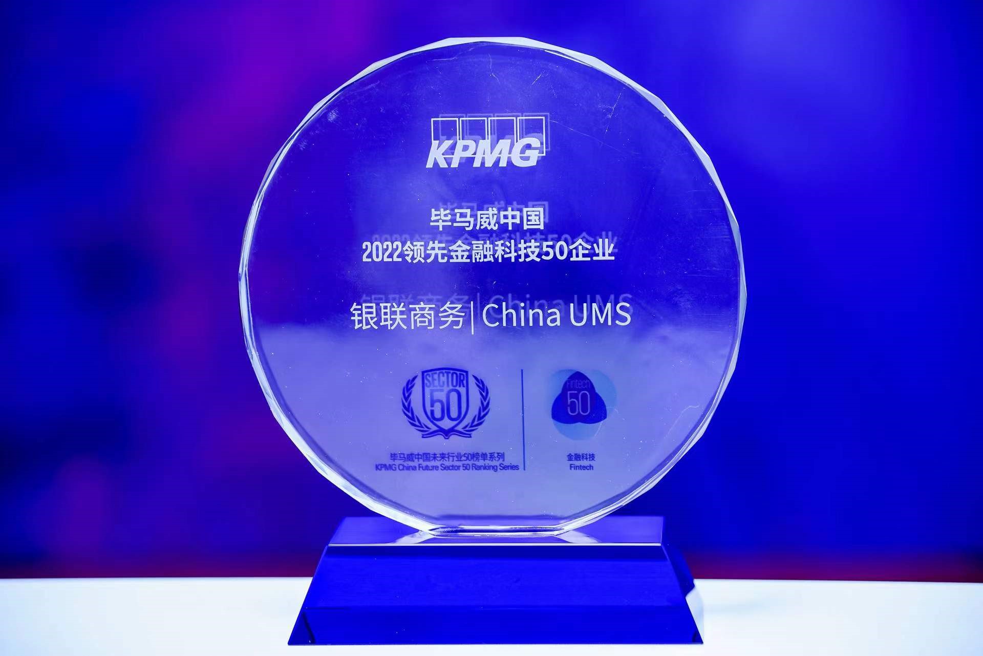 銀聯商務再獲畢馬威中國“2022領先金融科技50企業”