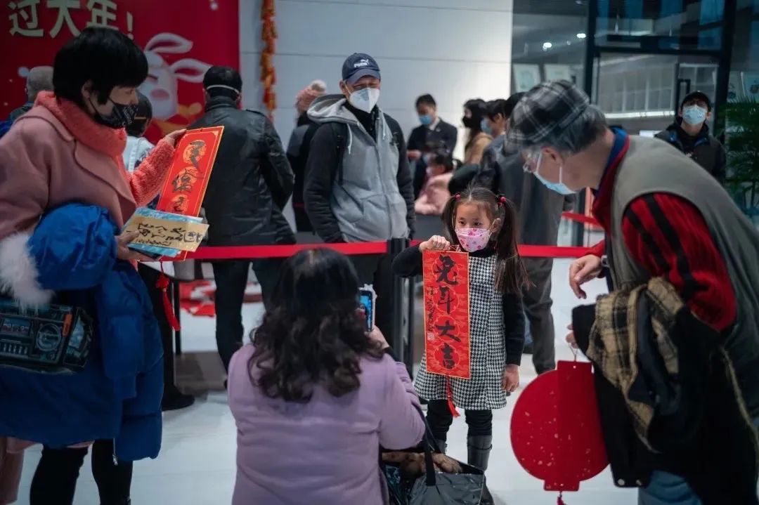 “名家寫的‘?!志褪遣灰粯?,太靈了!”活動現場,上海市書法家協會主席丁申陽,上海中國畫院副院長(主持工作)江鵬和上海中國畫院畫師丁筱芳、汪家芳、鮑鶯揮毫潑墨,為觀眾們寫下一張張“?!弊忠约啊巴媚甏蠹薄叭f事如意”等祝福語。