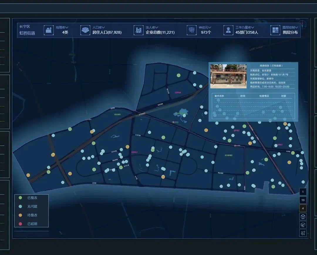 街道積極推進街區5G網絡深度覆蓋,試點街區數字門弄牌建設,推進步行街全域社會治理要素——地址庫建設應用,建立健全黃金城道及周邊區域小區、商鋪、公共服務設置、重點部件信息網絡;