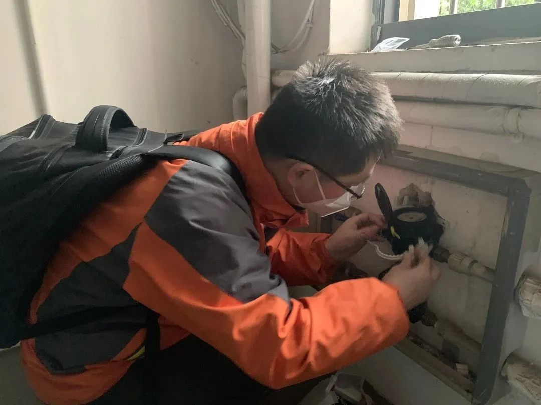 春節前,曲陽路街道開展孤老智能水表安裝試點工作。