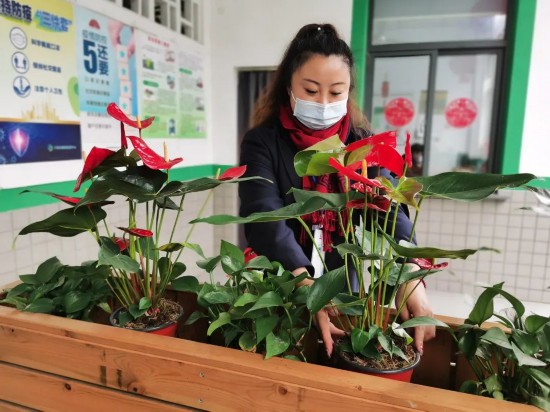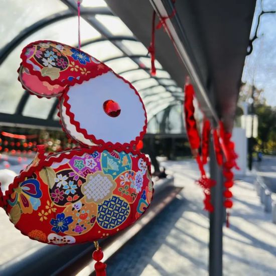 20路中山公園特有的玻璃候車亭上,裝點了金光燦燦的“兔年大吉”祝福語,候車亭上方懸掛著一面面“?!弊掷ú蕩?,寓意新的一年福氣滿滿,八根立柱上掛上了新春燈籠裝飾讓人眼前一亮,以“瑞兔呈祥”為主要元素的生肖兔背景板與20路復古造型公交車交相輝映;調度室外,各式樣的兔年造型裝飾烘托出濃濃的“年味”兒,門窗貼上了象征著兔年吉祥如意的壁紙和窗花,一抹抹“中國紅”為歲末年初增添了一絲美好寓意,引得不少市民乘客駐足拍照。