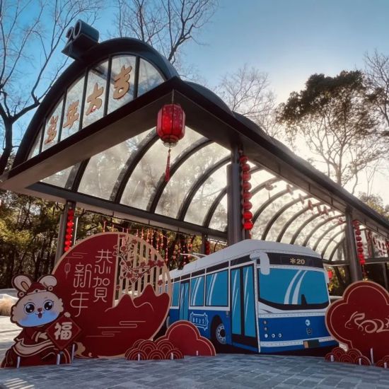 巴士一公司20路以“瑞兔呈祥”為主題,對中山公園終點站進行“年味”布置,以新站新貌迎新春,為市民乘客營造濃濃的喜迎新年氛圍。