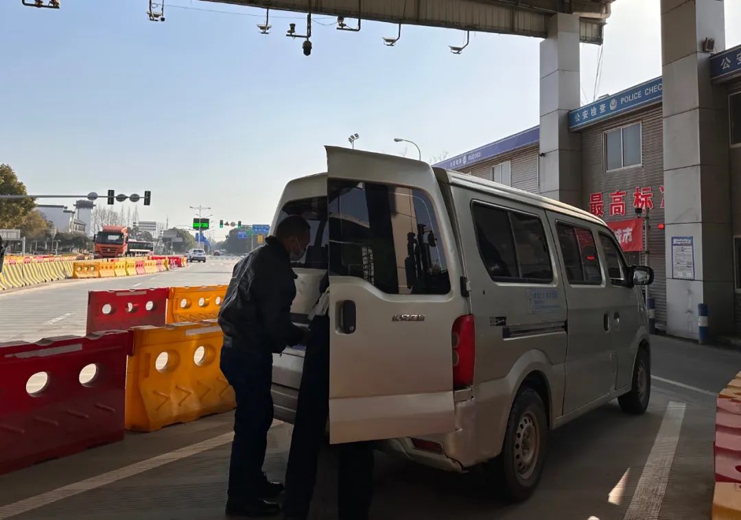 在楓涇檢查站,民警仔細對來滬面包車、小型普通客車、?;\輸車等重點車輛進行檢查,嚴查嚴處超員載客、客車載貨、攜帶違禁品等交通違法行為。