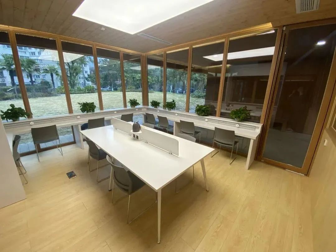 “小木屋”里采光最好、風景最美的一處空間就是公共閱覽區,這里寬敞明亮,大大的落地窗,映射出窗外綠地景色,環境舒適宜人。此外,公共閱覽區還添置了智能圖書柜、電腦等,吸引更多年輕人到此處學習。