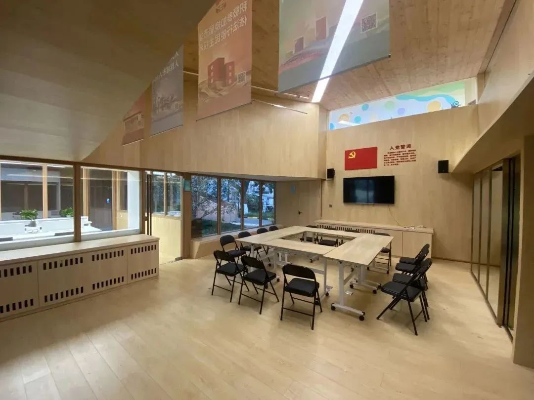 “小木屋”建成后,極大地拓展了居民的活動空間。綜合服務區通過桌椅、便民柜的不同組合形式,能夠滿足居民議事、小組學習、會議接待等不同用途。