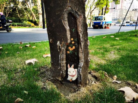 上海中山公園新添8個“樹洞畫”,你發現了嗎?