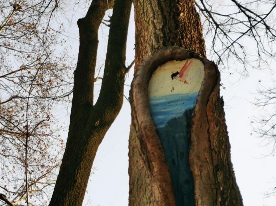 中山公園萬航渡路一側打開以后,市民可以近距離觀賞原本“藏”在園內的大樹,一些生長年代較久的樹木,因為樹皮破損,產生了大小不等的“樹洞”。為了給市民打造優質的游園環境,中山公園聯合上海市工藝美術職業學院開展了公園樹洞美化項目,為沿線八棵大樹的樹洞繪上了彩妝,也為百年公園增添了八個小景點。