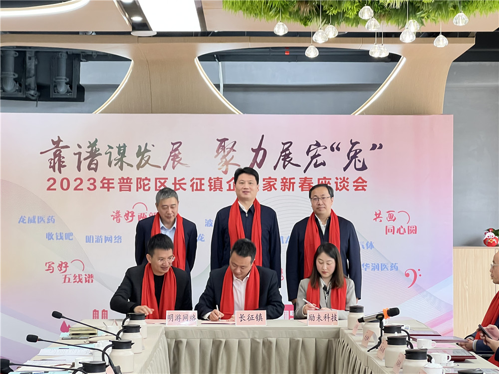 座談會上,明游網絡、華潤醫藥、億鈳氣體、收錢吧、龍威醫藥、開赟數字6家企業獲頒“前兔似錦”獎;波克科技、麥德龍、紅星美凱龍、永達汽車、勵未科技5家企業獲頒“大展宏兔”獎;長征鎮與勵未科技和明游網絡簽訂“以商引商”合作備忘錄。