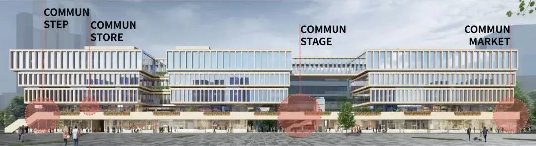 在設計上,建筑呈南北走向,長條形的體量給了它更多與街道親密接觸的可能。項目包括Community主題的大臺階、在地創意商店、露天臺階和集市這四大核心商業主題空間,其中,連通本項目與上生·新所的通道(Commun Stage),為過路行人提供了一處歇腳地。在地創意商店(Commun Store)是一處設置于二樓的封閉的多元空間,未來將作為開放場地服務于社區。