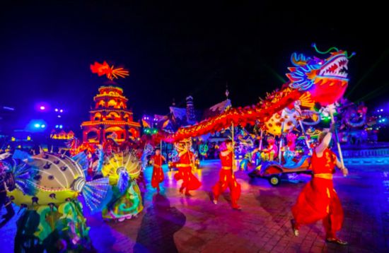 國風演出帶你穿越古今浪漫之約。多樣精彩的新春演出,別開生面的特色巡游,從早到晚精彩不停。