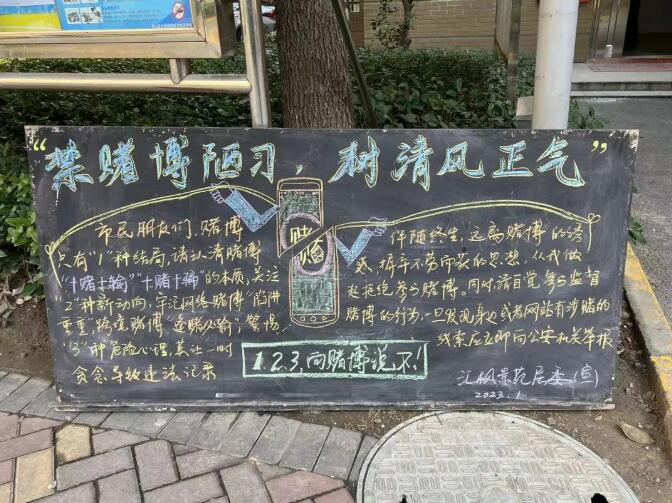 為進一步增強廣大轄區居民群眾識賭、防賭和拒賭的意識和能力,匯楓景苑開展禁賭宣傳活動。通過小區微信群、黑板報、電子屏等平臺,從法律知識、典型案例、懲治舉措等方面全面宣傳禁賭法律法規,詳細講解常見套路和慣用手法,充分揭露賭博違法犯罪活動的危害性、欺騙性和牟利性。居民們有感而發:“賭博害人害己,一定要拒絕賭博、遠離賭博!”