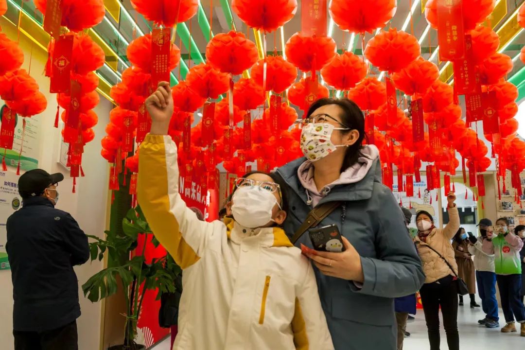 當天,“同XIN共享客廳”裝點得喜慶熱鬧,撕紙非遺傳承人、民間手藝達人以及來自同仁醫院的醫護人員集聚現場,各個展位前人流如織,或看面人、糖畫、撕紙表演,或體驗視力檢查、血壓測量、中醫問診服務,而結伴猜謎的市民更是絡繹不絕?!皩3越鹉净?,打一醫學術語”,“人體內含有的染色體對數”,“不怕細菌小,有它能看到,化驗需要它,科研不可少,打一工具”……當天的謎面圍繞健康而展開,現場的大人或是孩子,都沉浸在揭開謎底的快樂之中。