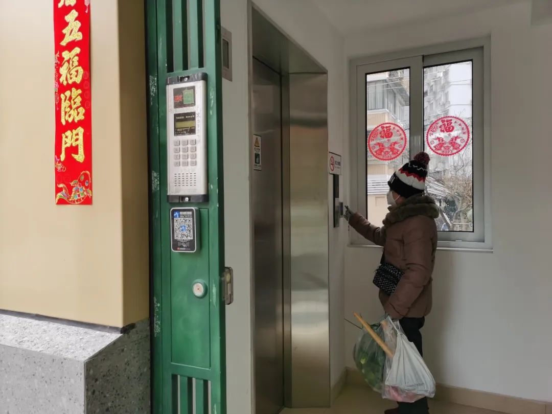 2月3日上午,周二居民區華苑小區喜氣洋洋,兩部嶄新的電梯佇立在小區的24、25號居民樓前,黃色的梯身和房屋的外立面完美契合。春節期間,加梯公司和樓內居民還一起在樓棟、電梯內裝點上了窗花和燈籠,一派喜慶祥和。