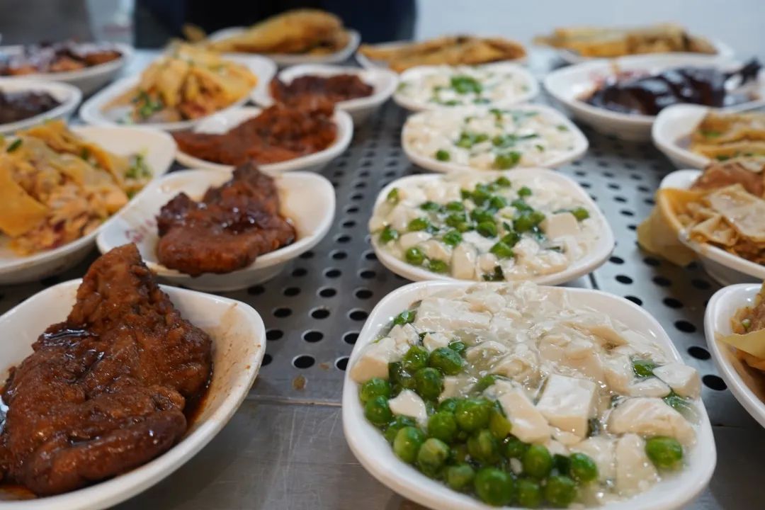 中午11點,社區食堂內已經排起了取餐的隊伍。社區食堂負責人金女士告訴記者,食堂中午時段為居民提供約30個單點菜品,其中,大葷、小葷、素菜各10個左右。晚餐的菜色基本和午餐相同。