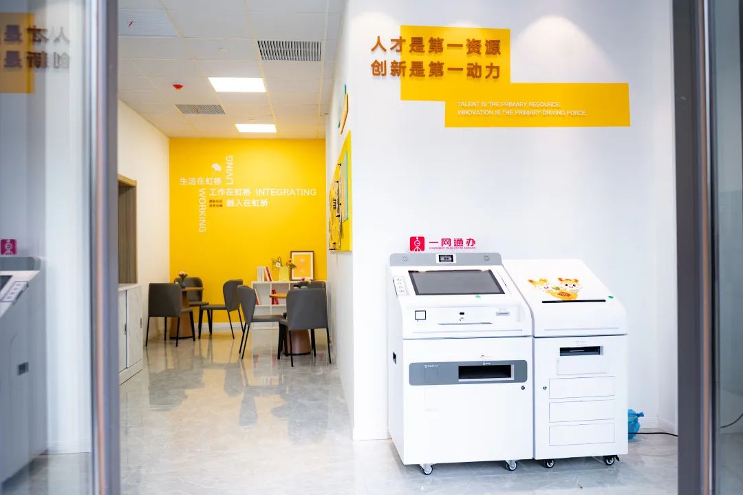 記者在站點看到,這里面積不大,但被明亮的黃色裝點得格外有活力,隨處可見時尚俏皮的裝飾品,符合了公寓年輕化的定位。站點內一臺“一網通辦”自助服務機以及接待臺前各類政策宣傳折頁,讓人才辦事更加高效便捷。