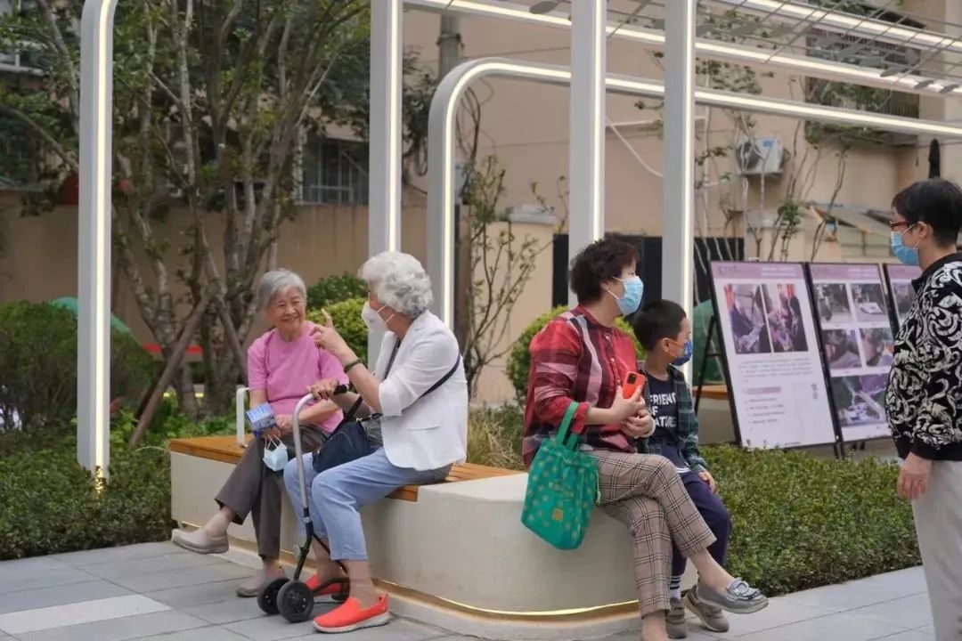 而在距離周二樂鄰之家10分鐘步程的“樂”享花園,是生活在長寧新城的王阿婆回家的必經之路。這不,帶著孫女剛剛從盒馬購物回來的她,靜靜地坐在花園的凳子上,一邊享受陽光灑在身上的溫暖,一邊看著孫女在花園里肆意奔跑。直到孫女玩累了,才重新“啟程”。
