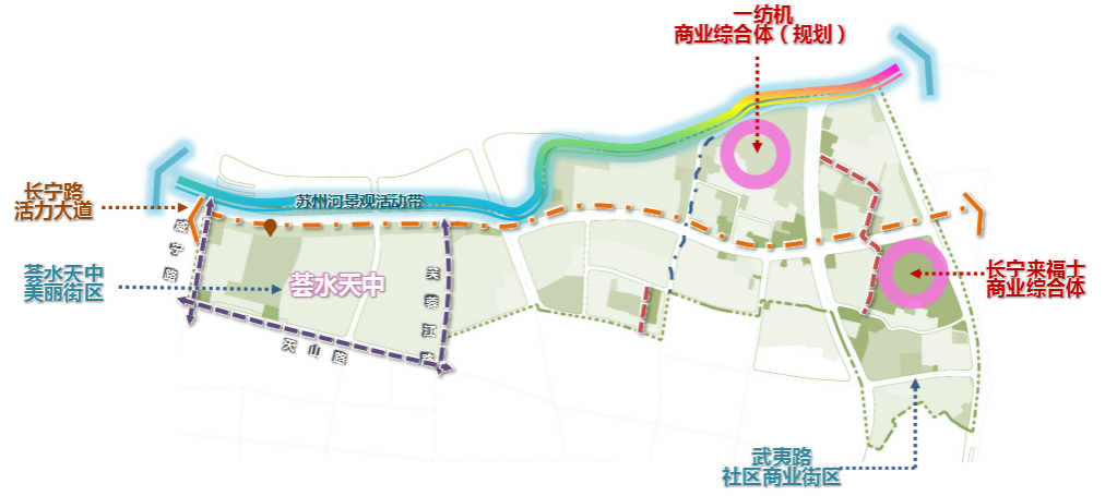 針對轄區呈現狹長形的特點,各類商鋪主要集聚在貫穿整個轄區的長寧路沿線的情況,街道將著力鍛造沿街商業界面活力,同步激發轄區背街小巷社區商業潛力。