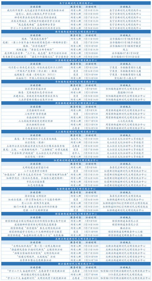 熱鬧元宵剛過,精彩活動不斷。二月,長寧區新時代文明實踐中心及各街鎮分中心將繼續推出內容豐富、形式多樣的文明實踐活動。