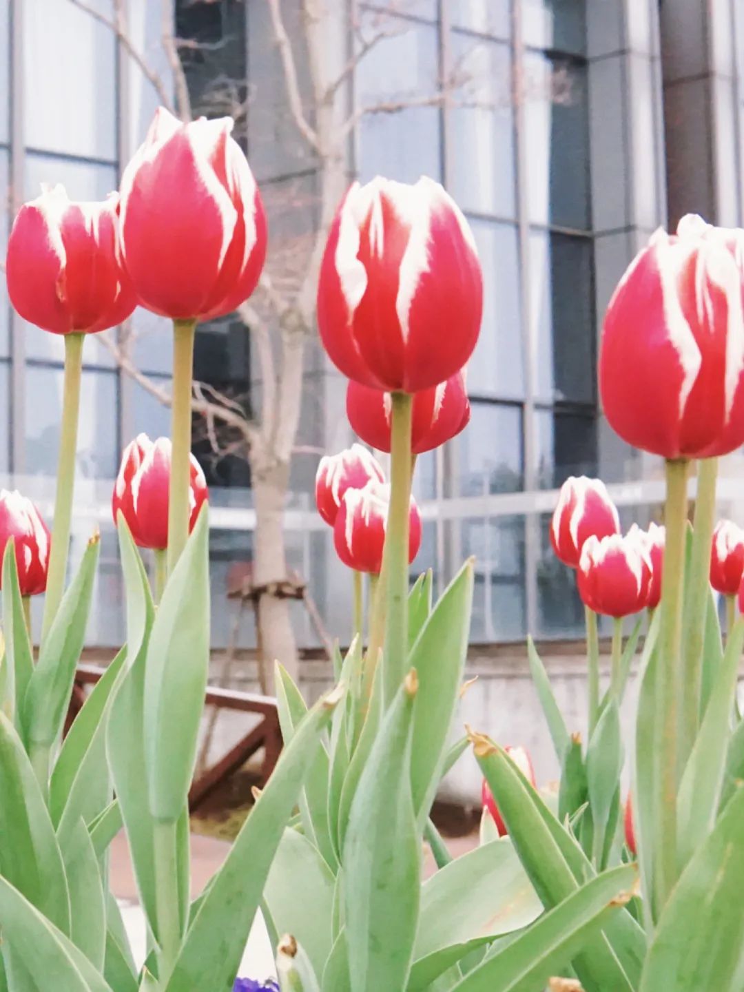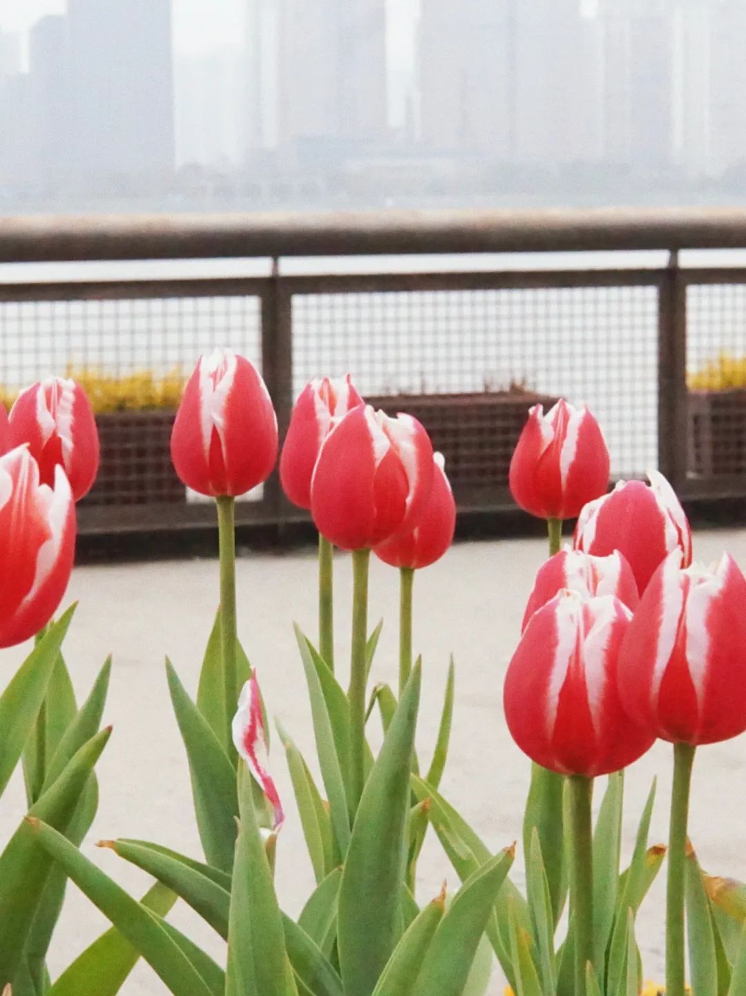 2月8日,記者來到楊浦濱江漁人碼頭,一簇簇火紅的郁金香映入眼簾。沿著步道漫步,一路上,紅色帶著白邊的花朵分外嬌艷,活潑靈動。