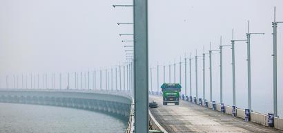 昨天,工程車行駛在滬蘇湖鐵路上海段元蕩湖大橋上。由中鐵十四局承建的滬蘇湖鐵路元蕩湖至太浦河架梁工程全部完成,全長約11公里。滬蘇湖鐵路是長三角一體化國家戰略基礎設施互聯互通重大項目,橫穿長三角核心區域。建成通車后,上海至湖州車程最快只要40分鐘。